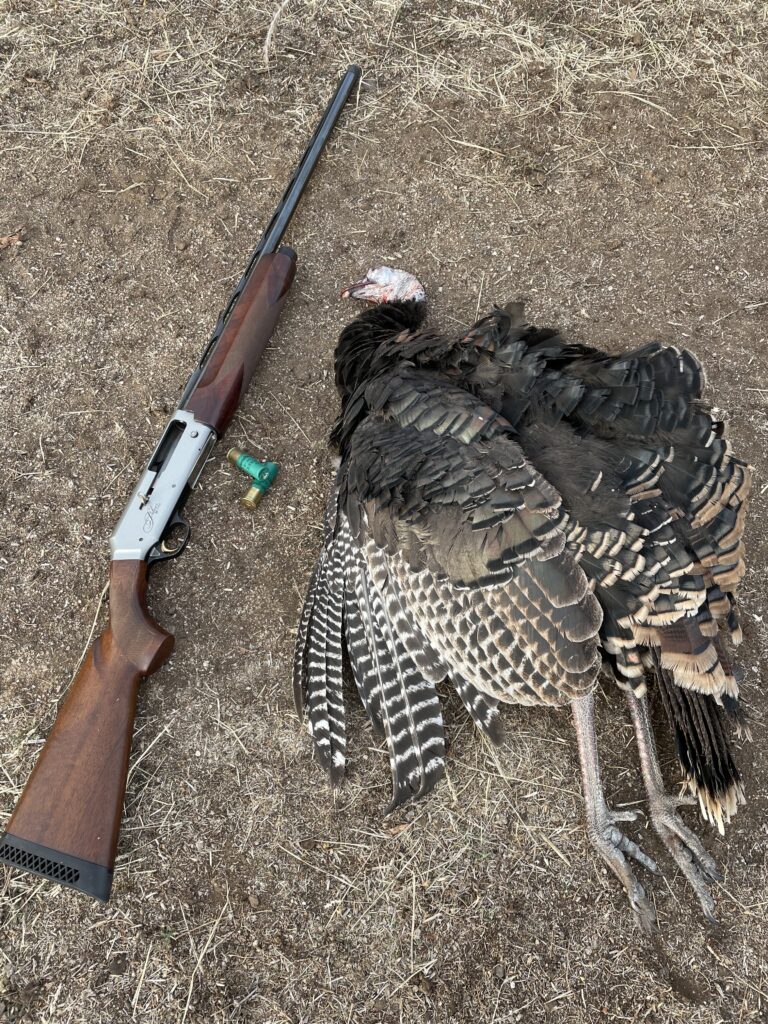 Harold and I sat along that tree line for over an hour. I set up directly beneath a roosted tom, and 10 minutes before sunrise he loudly exploded from his tree in the exact opposite direction. Two more male birds followed suit but never offered a shot. After that early blunder, not much else was moving.