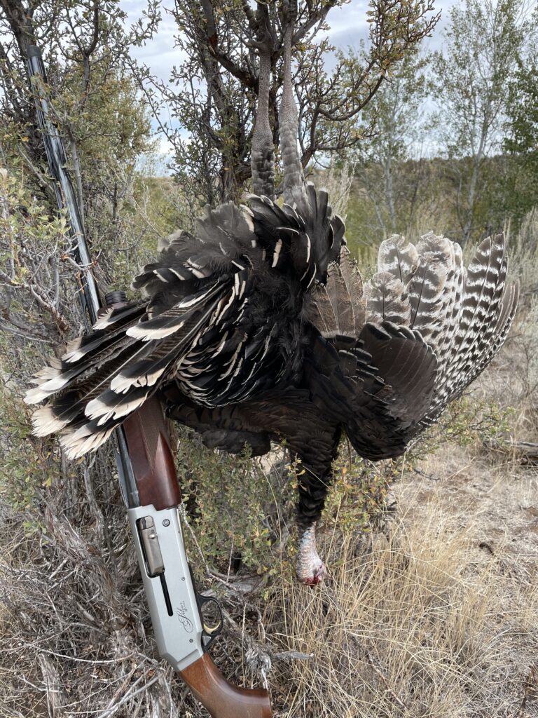 Honestly, my fall turkey success has always been through spot-and- stalk hunting. Locating feeding or moving birds from a distance using binoculars, I’ll gauge their movement and direction and attempt to quietly get in front of them. Setting up in the thick brush and wearing camo, I can hopefully get a bird to move close enough for a shot.